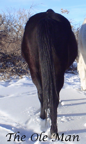 She is in foal to KING TIP KING -KING Am I excited YES! I bought her just this fall, and yes she is old but she is in such nice shape. And a big black mare. I can not wait until she foals, and hopefully I will get another out my our stallion in 2005.